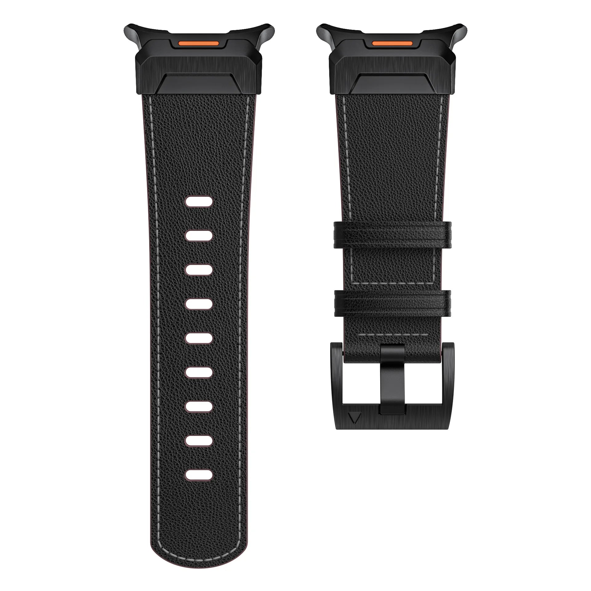 De zachtheid van het leer zorgt voor een comfortabele pasvorm om je pols, en dankzij de roestvrijstalen gespsluiting zit de band stevig vast aan je Samsung Galaxy Watch Ultra, zodat je de hele dag met een gerust hart kunt doorgaan.